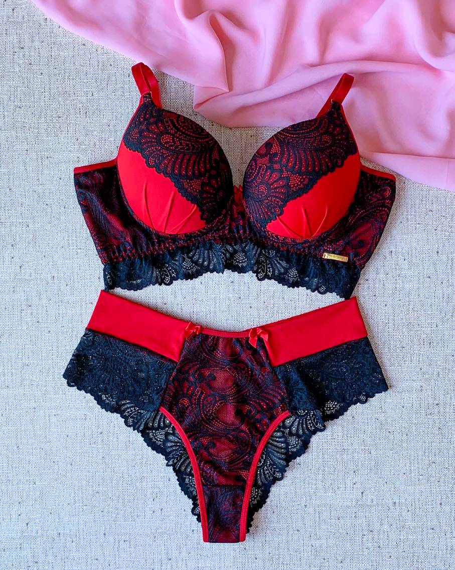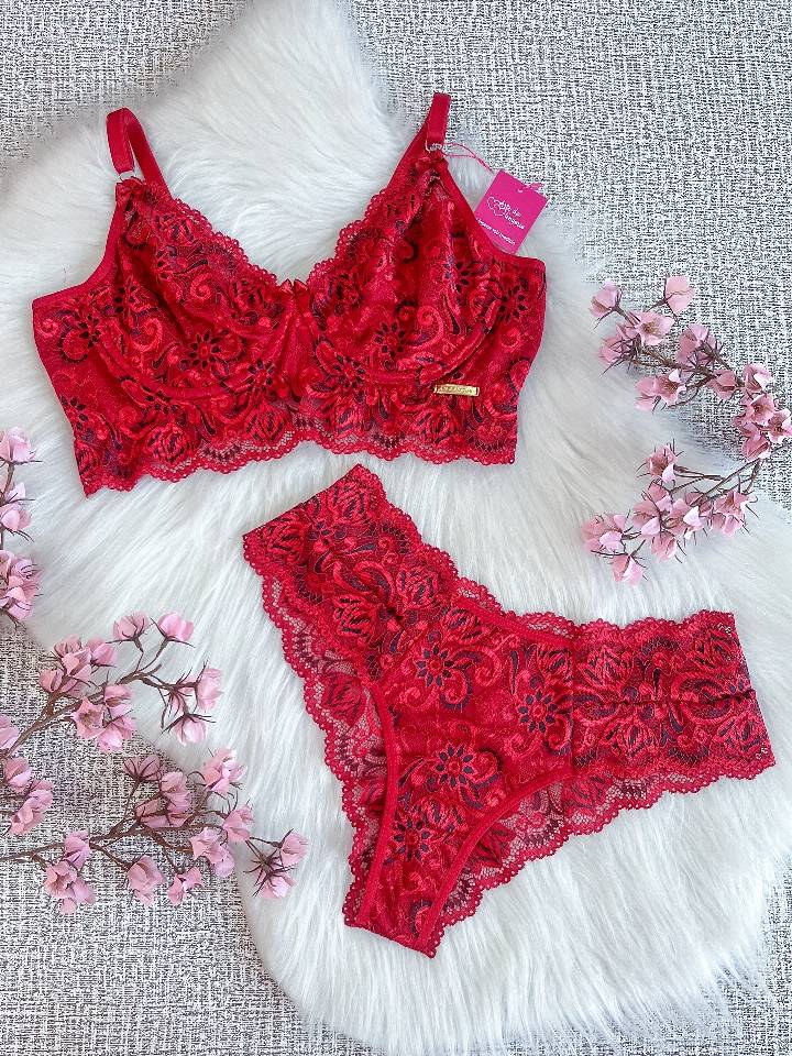 Conjunto Paloma duo color rubi com preto