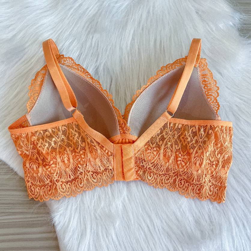 Sutiã de renda estilo cropped, sem forro nas laterais, alças com regulagem nas costas, bojo em formato de triângulo e super macio, possui elástico na base e não possui aro. Se desejar você pode escolher um modelo de calcinha avulsa para montar conjunto, basta adicionar no pedido a calcinha na mesma cor do sutiã. Confecção por encomenda e sob medida ( pode ser bojo e costas de tamanhos diferentes) Para fazer o pedido é só escolher aqui abaixo a cor e o tamanho que gostaria de encomendar e adicionar no carrinho e depois ir para o carrinho e clicar no botão: Finalizar compra pelo Whatsapp. Obs: fazemos o sutiã em todas as cores da nossa cartela, porém só temos o bojo nas cores preto, chocolate e branco. Nas outras cores colocamos sempre o chocolate.