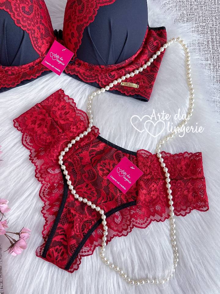 Nosso queridinho Conjunto Amora, numa combinação de cores mais que perfeita: preto + vermelho Sutiã de base cruzada reforçado + calcinha semi fio de renda. Para fazer seu pedido selecione logo abaixo a cor e o tamanho que gostaria de encomendar, em seguida clique em Adicionar no carrinho. Depois vá para o carrinho e clique no botão: Finalizar compra pelo Whatsapp.