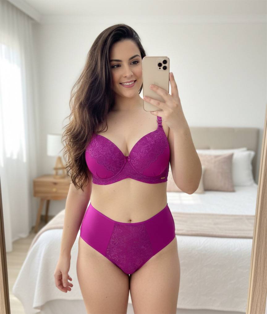 Esse conjunto é a opção perfeita pra quem procura por peças de maior sustentação. Sutiã de base cruzada, com a lateral dupla. Calcinha fio duplo, cintura alta e com lateral bem larga e fundinho de algodão. Confecção por encomenda e sob medida (pode ser busto, costas e calcinha com tamanhos diferentes) Para fazer seu pedido selecione logo abaixo a cor e o tamanho que gostaria de encomendar, em seguida clique em Adicionar no carrinho. Depois vá para o carrinho e clique no botão: Finalizar compra pelo Whatsapp. Vamos receber o link com o seu pedido e entraremos em contato para fechar a encomenda!